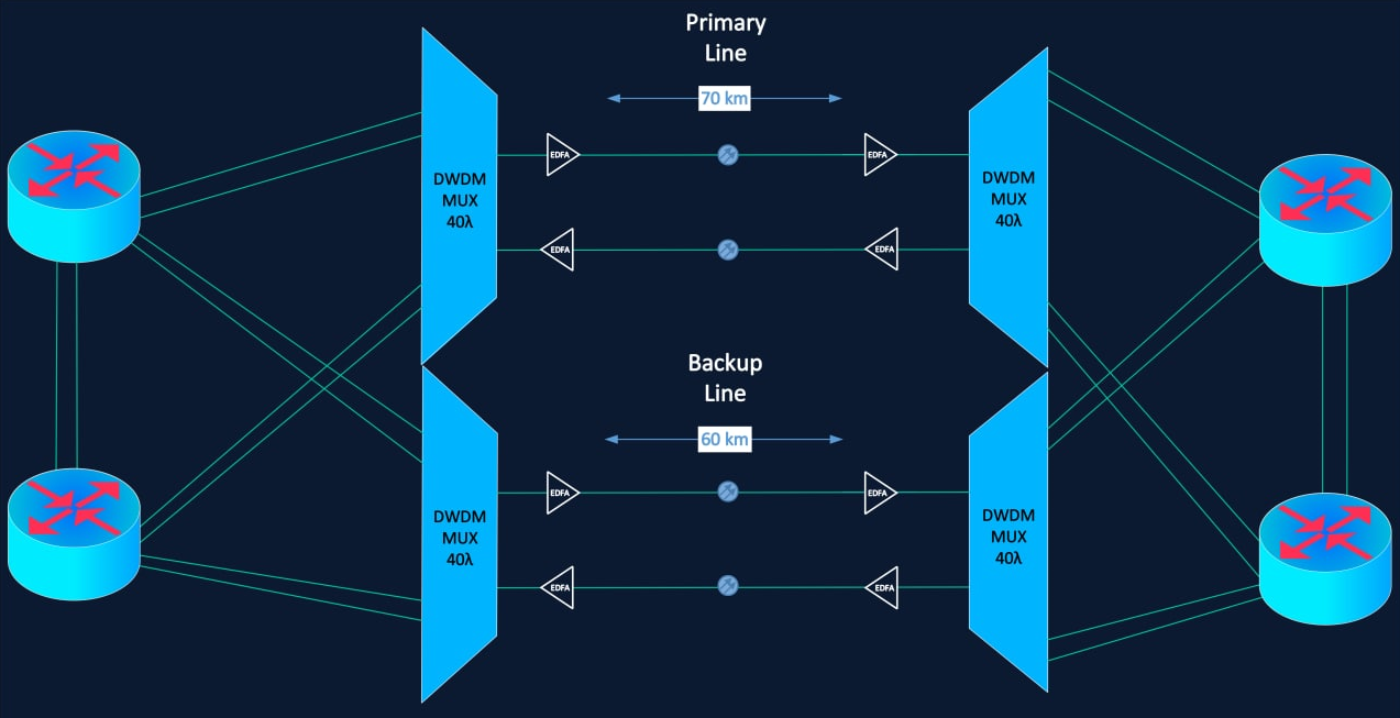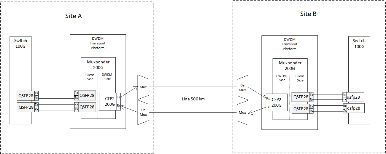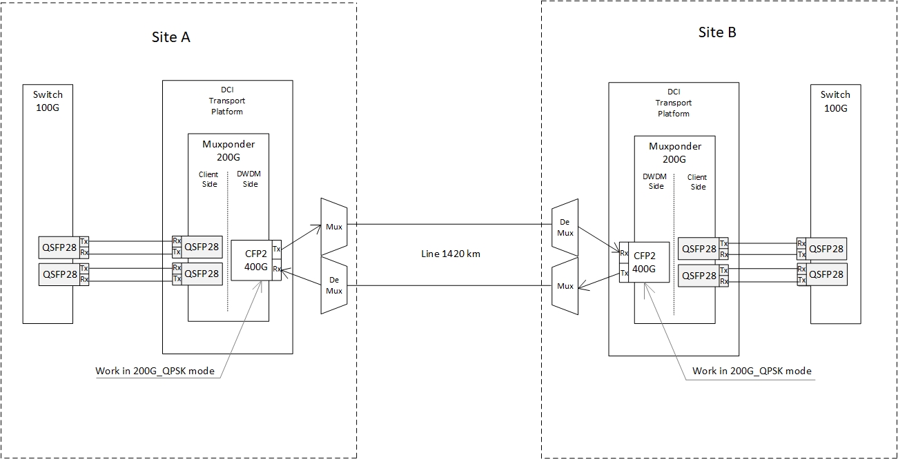solution:The transmission of the 200G channel will be carried out over the optical fiber of the backbone provider, from which our client rents one DWDM channel.
