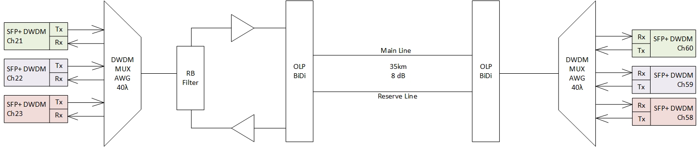 Building a network, starting with 3x10G channels on a single fiber and reserving the optical path according to the 1:1 scheme for a distance of 35 km with the possibility of expansion up to 16x10G.