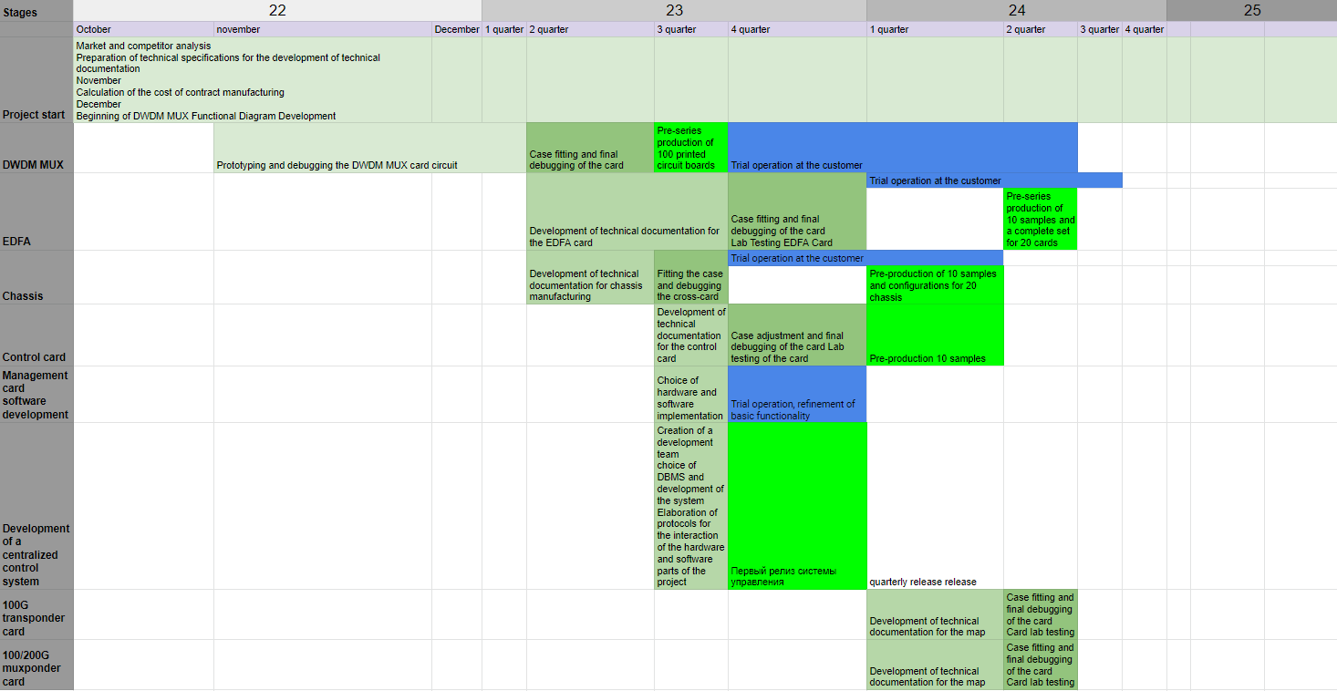 Development of own design and design of printed circuit boards: chassis, control cards, EDFA amplifier cards.